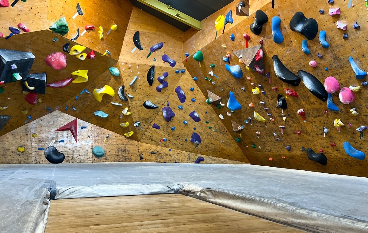 ボルダリングジムの施工事例。無垢板に近い質感を実現