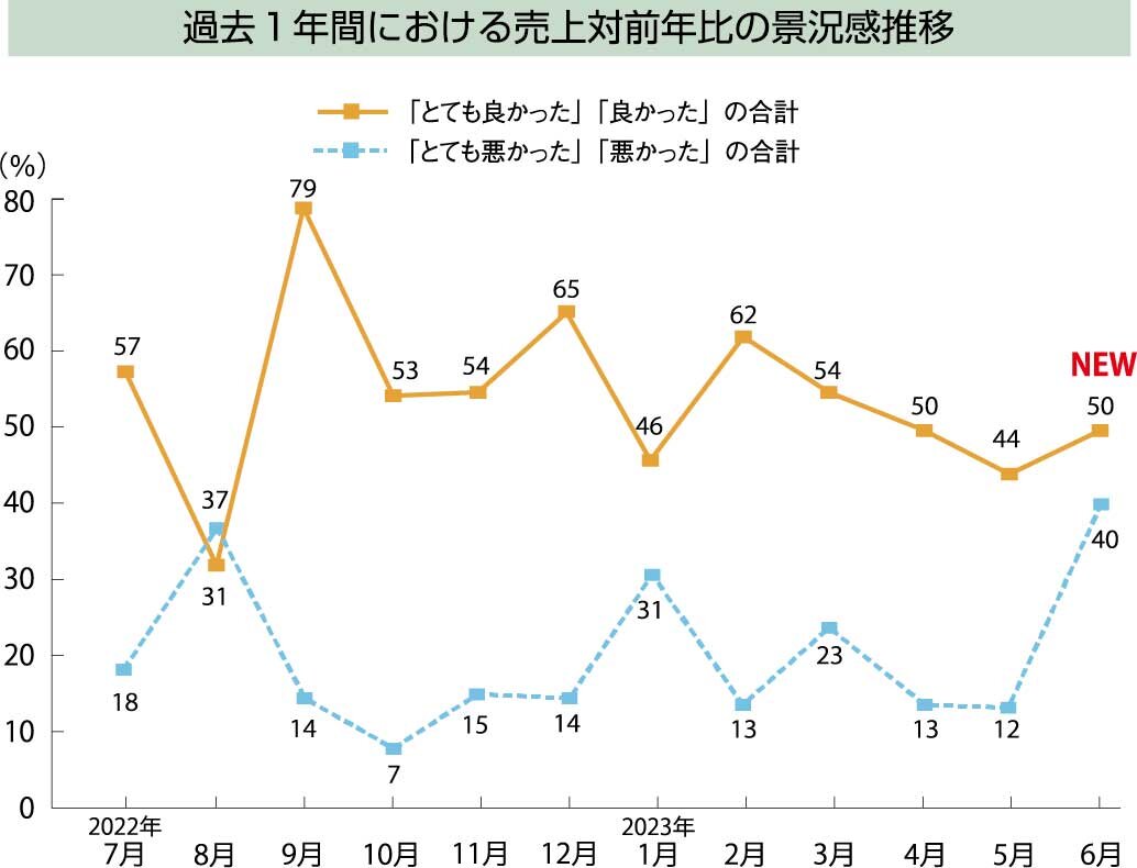 - 【景況感調査2023年7月】売上、対前年比「良い」15pt増